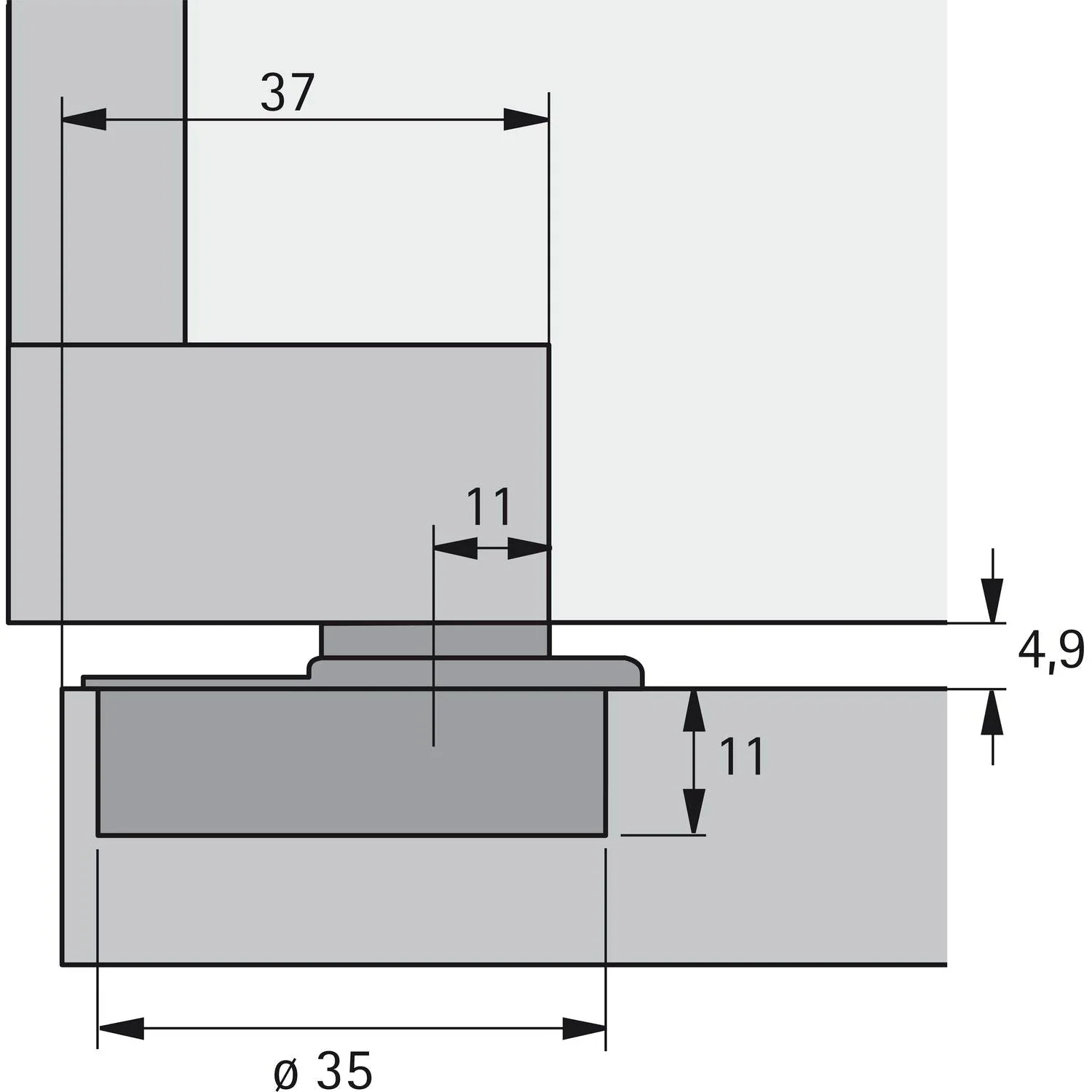 - Door overlay at least 37 mm (hinge arm flush with the edge of the frame)