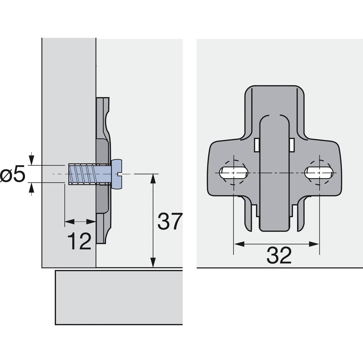 - Mounting plate height adjustment range + 3 mm / - 3 mm